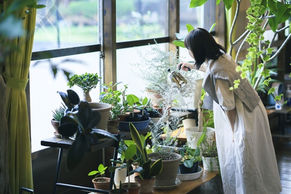 緑色は、観葉植物として取り入れるのが最も自然で効果的です。リビングやキッチン、バスルームなどのくつろぎスペース、または仕事場のデスク周りに置くことで、視覚的にも心理的にもリラックス効果が得られます。